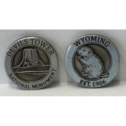 Devils Tower Collectors Token. Front has the Tower and on the back is a prairie dog.